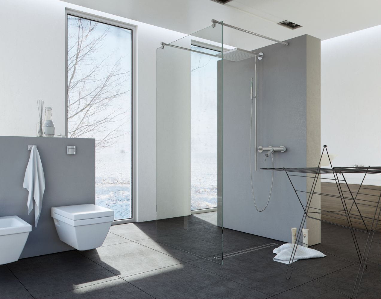 Kabinę prysznicową można też zamontować na podłodze, co jest rozwiązaniem coraz częściej spotykanym w polskich domach. Ten sposób pozwala na łatwe utrzymanie czystości w strefie prysznicowej. Dla uzyskania pięknego efektu możemy zastosować brodzik podpłytkowy lub odpływ liniowy, umożliwiający schowanie wszystkich elementów pozwalających na branie prysznica pod powierzchnią podłogi.