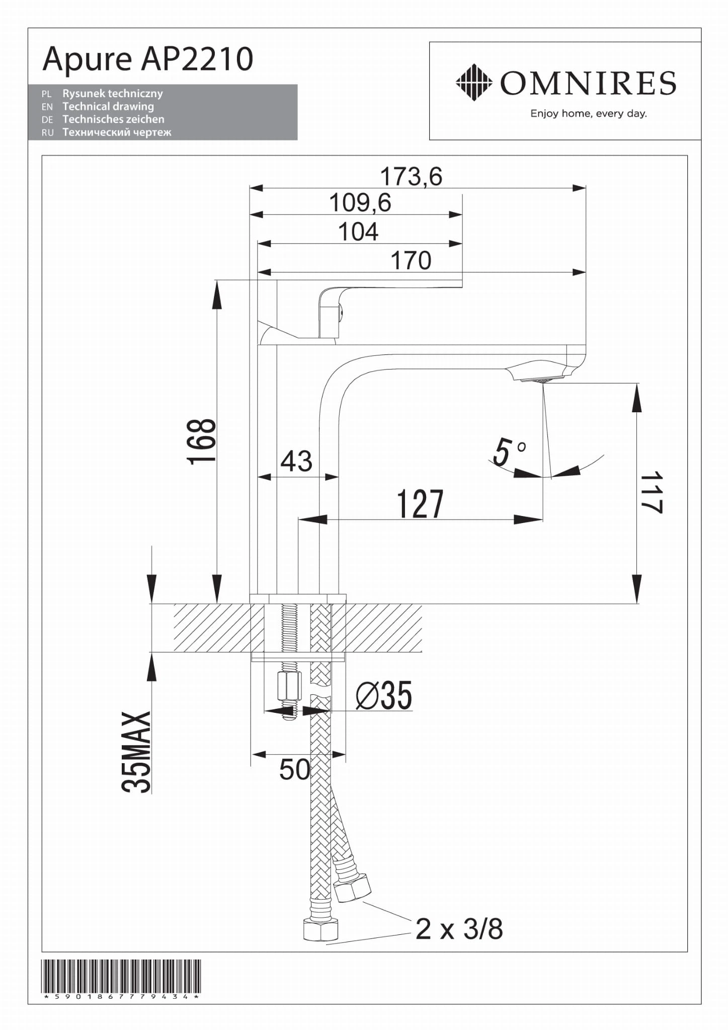 Opis produktu OMNIRES APURE Bateria umywalkowa AP2210