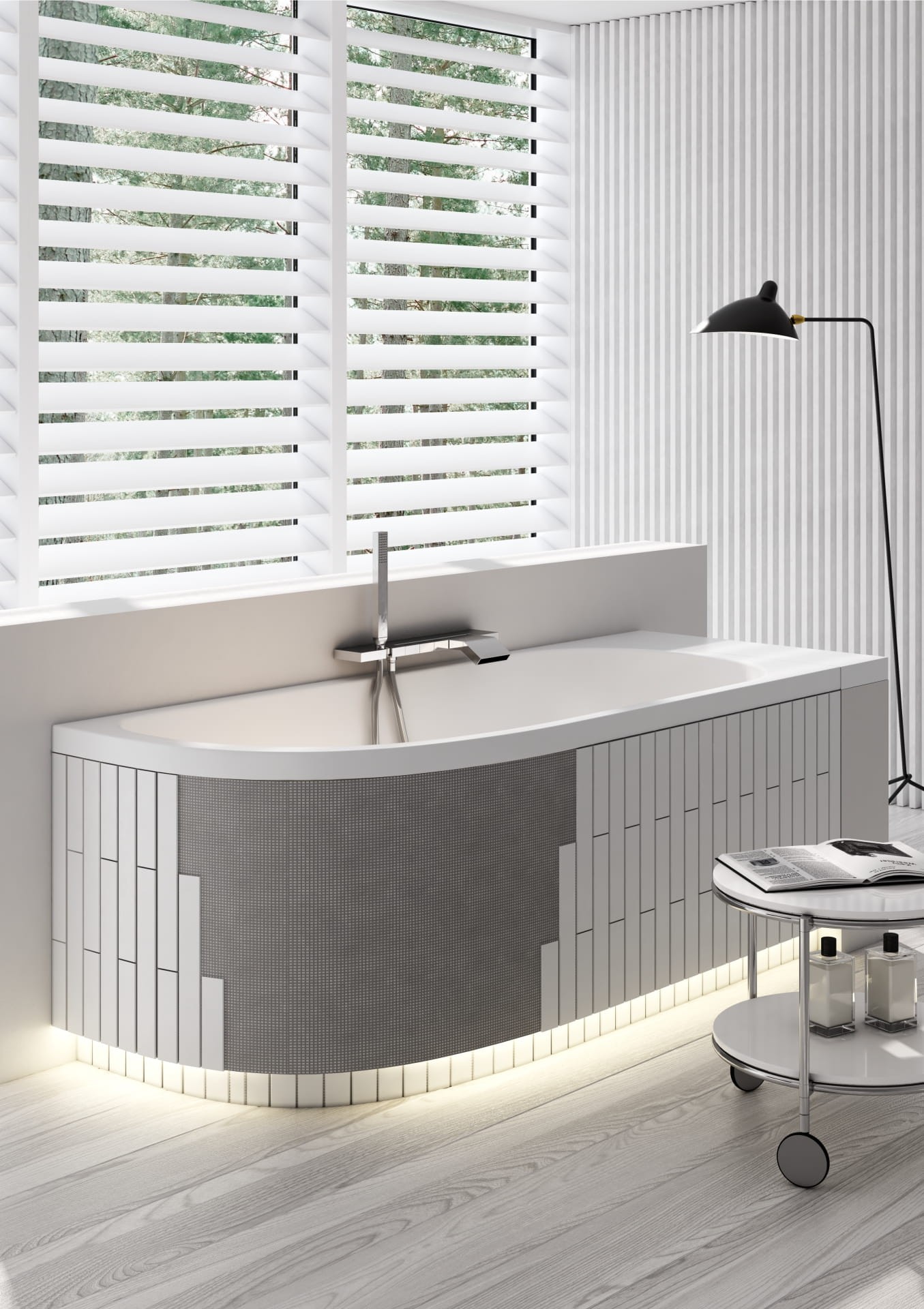 Opcja obudowy wanny z podcięciem pozwala na lepsze zagospodarowanie przestrzeni pod wanną. To funkcjonalne rozwiązanie, które poprawia wygodę użytkowania oraz pomaga w przechowywaniu akcesoriów łazienkowych, zwiększając tym samym estetykę całego wnętrza.