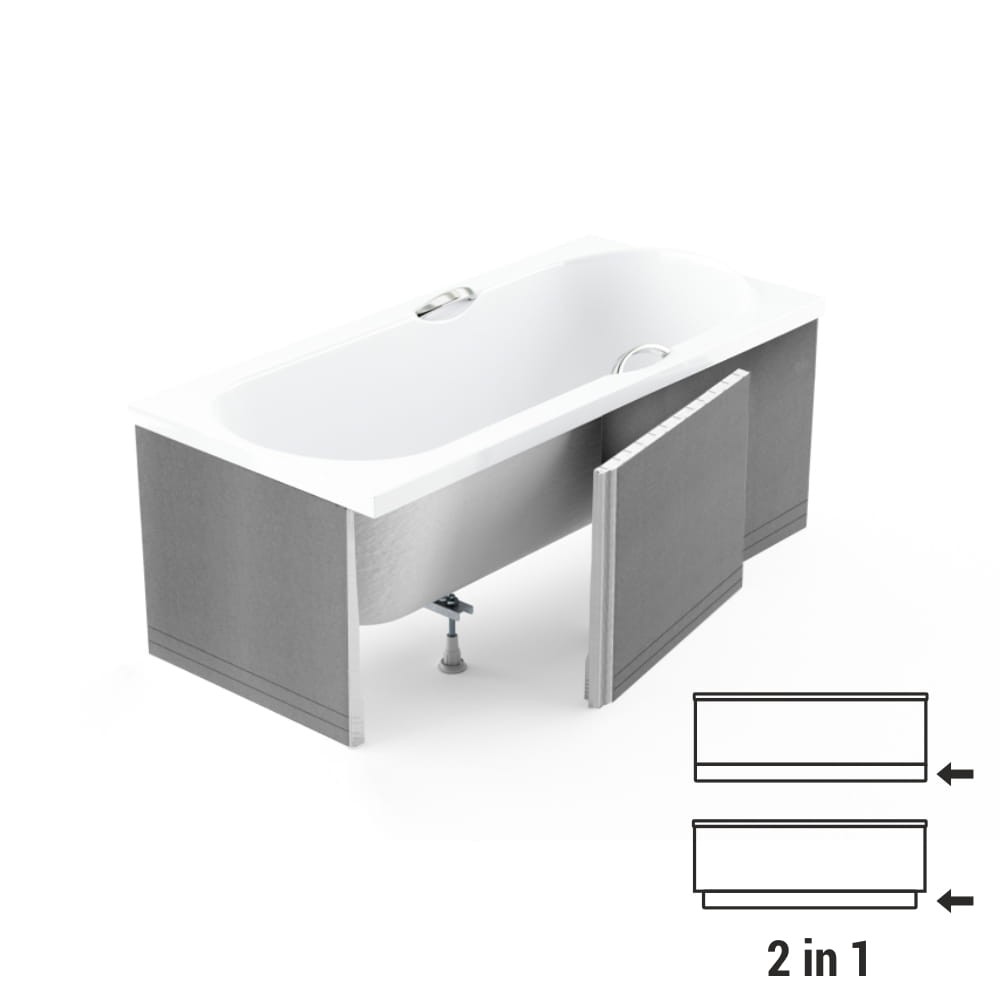 Obudowa uniwersalna Lunona pozwala nie tylko na zabudowanie wanien prostokątnych o max wymiarach 200×100 cm (o wymiarach: 120-170×70 cm, 140-170×75 cm, 160-200×80 cm, 160-200×90 cm oraz 160-200×100 cm) oraz półokrąglych .Obudowa uniwersalna daje możliwość montażu zarówno prostego jak i z podcięciem na stopy / LED.