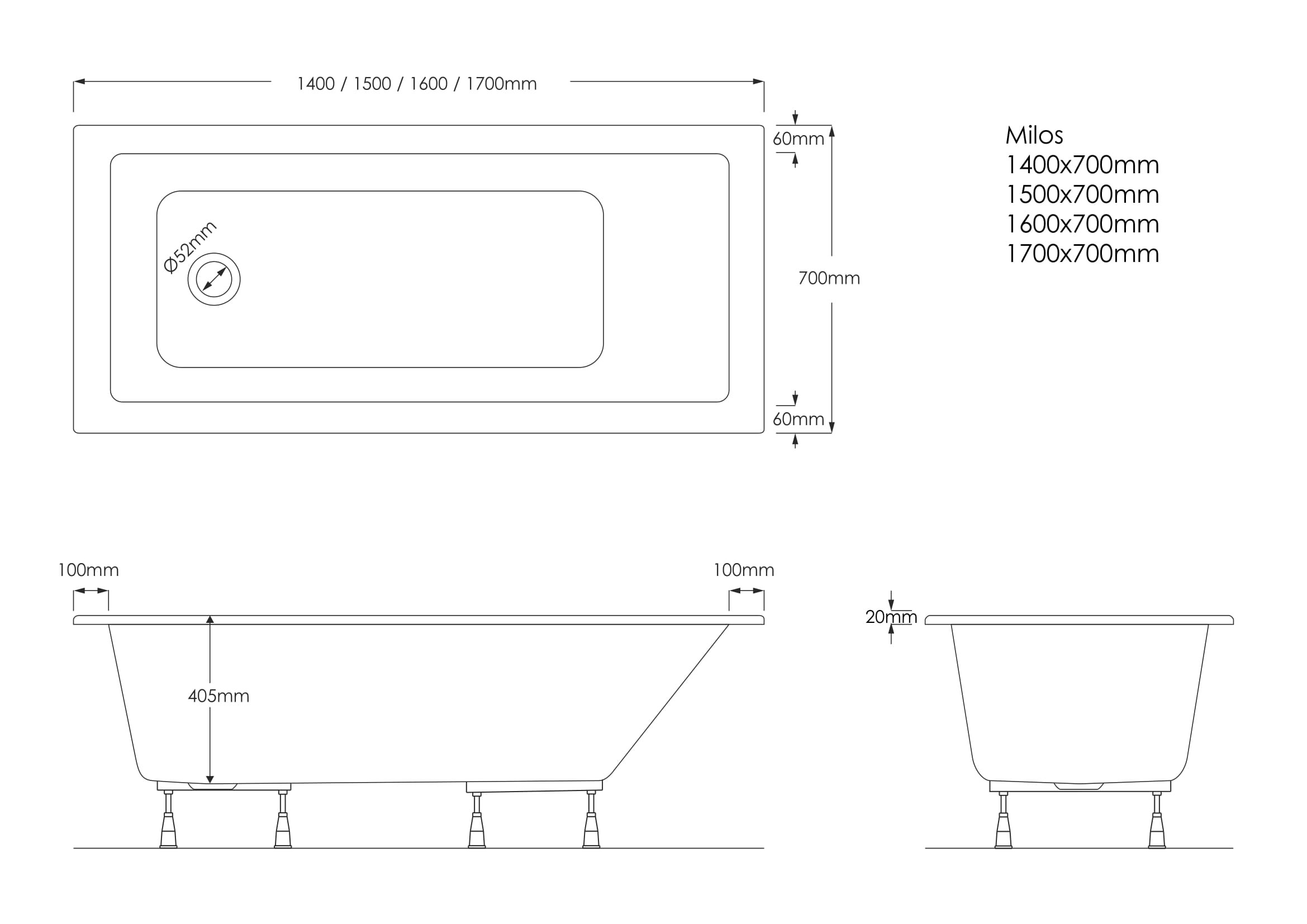 wymiary wanny: 170x70x40,5 cm